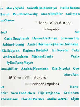 In Kooperation mit dem Villa Aurora Forum Berlin fand im Kurs ein hochschulinterner Wettbewerb um die Gestaltung des Jubiläumskatalogs statt,